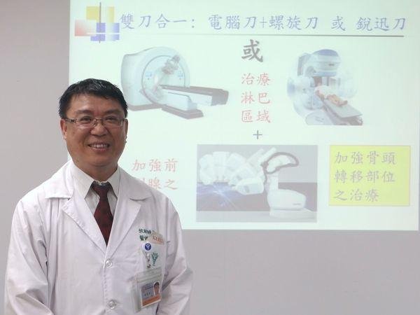 奇美電腦刀中心對於在第一、二、三期的病人,使用電腦刀及荷爾蒙治療,均可達到5年存活率,攝護腺抗原(下列簡稱PSA)控制率大於95%以上。關於第四期(末期)的攝護腺癌病人,則是指轉移至淋巴腺、骨骼或其他器官,此類病人傳統上常常只使用荷爾蒙治療。只有淋巴腺轉移病人,平均存活率可大於5-6年以上,而轉移至骨骼或其他器官病人,平均存活率約2-3年。 奇美醫院電腦刀中心從民國100年開始收治第四期病人,但排除骨骼或其他遠端器官。截至2014年9月份,共收治18位病人,年齡平均為71歲,經由電腦刀加上螺旋刀或銳速刀,對癌症病灶先行大範圍放射線治療共計25次,若有局部淋巴或遠端淋巴轉移,則會加強劑量5次,隨後,再使用電腦刀針對前列腺及鄰近儲精囊做高劑量3次根除性放射線治療,追蹤結果無嚴重副作用(血便、血尿)產生,僅輕微副作用如頻尿、腹痛、腹瀉、排尿灼熱感等現象,均可在兩週至兩個月內獲得改善,目前所有病人均無PSA 升高復發的現象。