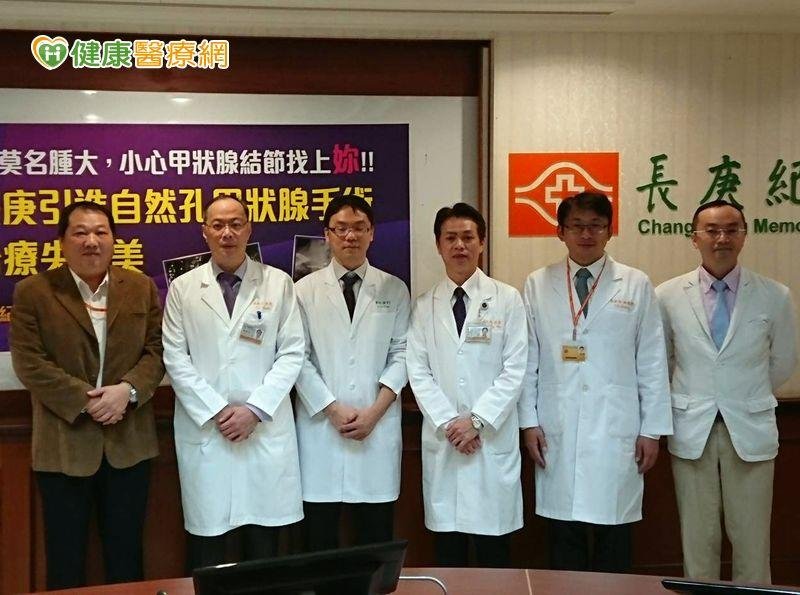 傳統手術切除甲狀腺腫瘤,病患頸部至少留下長達7至8公分疤痕,基隆長庚醫院一般外科醫師陳育賢,遠赴國外學習自然孔微創甲狀腺手術,利用內視鏡或達文西機械手臂經口內進行,即使切除巨大的甲狀腺腫瘤,外觀也完全無疤,且幾乎無疼痛感、復原快。8公分甲狀腺腫瘤 微創手術無疤一名45歲的李小姐,總是