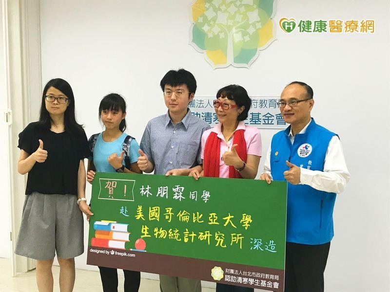 預計赴美國哥倫比亞大學生物統計研究所就讀的受認助學子林朋霖,感謝台北市政府教育局認助清寒學生基金會認助人邱淑治。林朋霖同學是基金會成立以來,首位赴美國名校深造的學生,邱淑治阿姨更是基金會首位持續認助學生到出國留學的善心人士。清寒基金會的幫忙 讓困境兒出頭天台北市政府教育局局長兼認助清