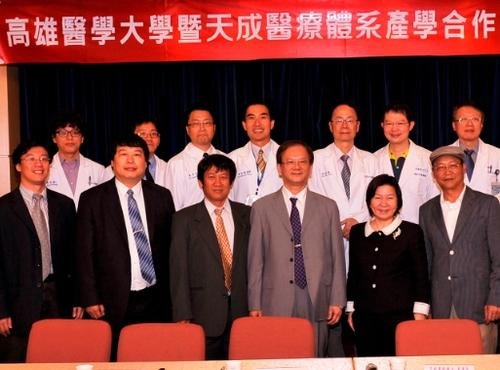 高雄醫學大學與天成醫療體系為加強雙方產學合作,今日假中壢天晟醫院舉辦「高雄醫學大學暨天成醫療體系產學合作計畫簽約典禮」,並由高醫大劉景寬校長及天成醫療體系張育美董事長代表簽約,期盼未來能經由密切合作與資源共享,不斷激勵各自產學研發能量,以提昇醫療水準。