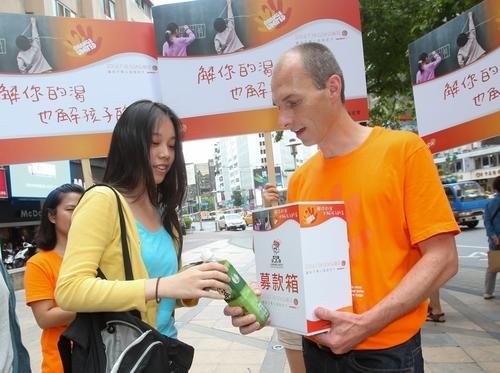 為力行回饋社會企業責任,GSK集結全體400員工,今天舉辦Orange Day公益日以「解你的渴、也解孩子的渴」活動,從中正紀念堂出發,在台北市區21個地點,對社會大眾進行冰涼飲品義賣募款,所有募得款項將捐贈給兒童福利聯盟文教基金會,幫助台灣因經濟困頓、身處弱勢的孩子們。